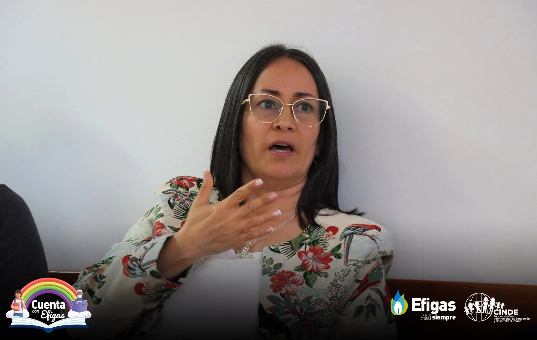 “Cuenta con Efigas me ha brindado nuevas formas de enseñar a leer y a escribir a los niños, como el cine foro, que nos permite leer imágenes, interpretar nuevas miradas y descubrir nuevas lecturas. Estas herramientas me han llevado a reafirmar que leer y escribir va más allá del papel y el lápiz: también se resignifica en otros espacios y formas de pensar”.