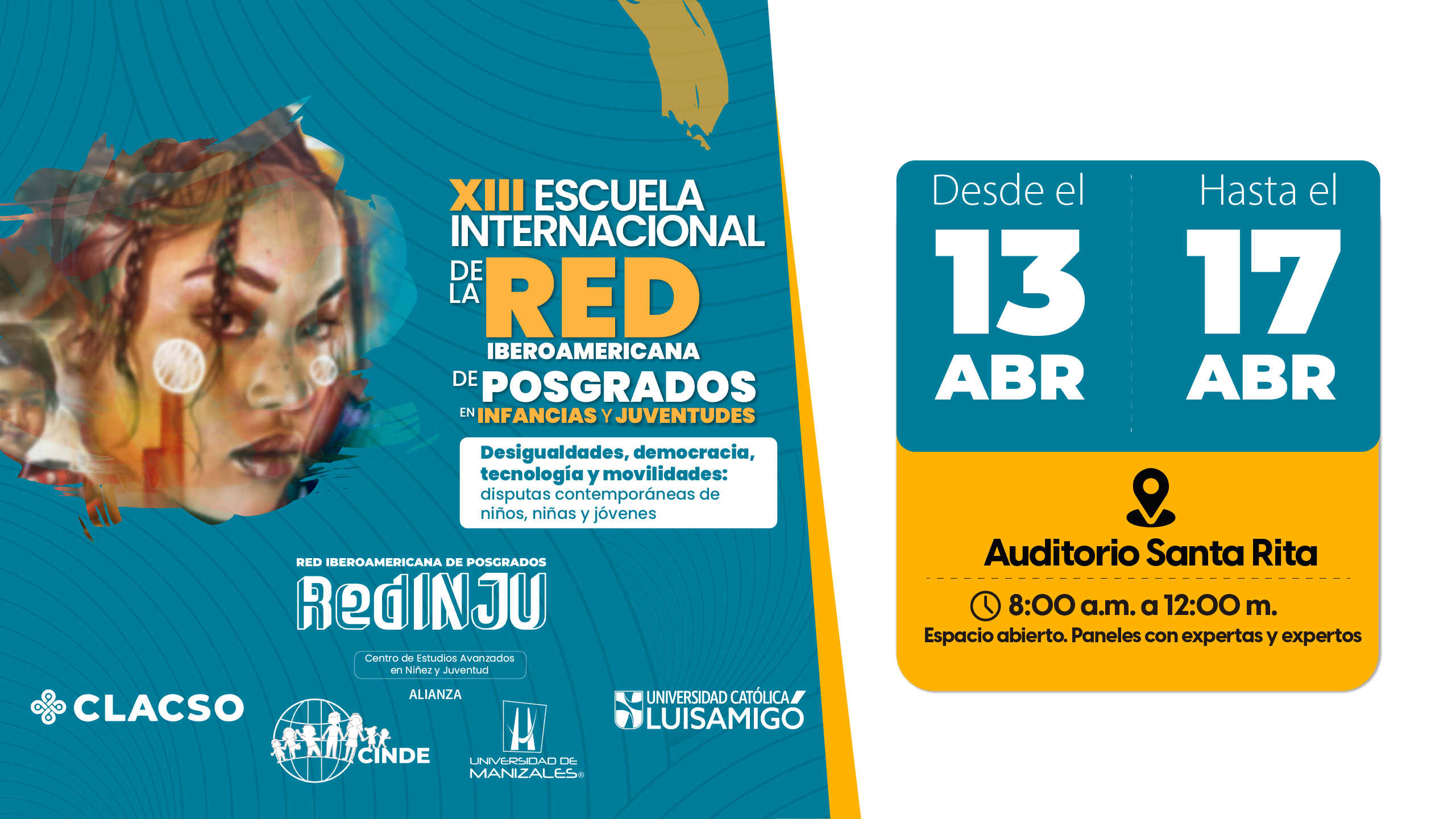Este espacio académico de alto nivel es impulsado por el Centro de Estudios Avanzados en Niñez y Juventud (CEANJ), una alianza entre el Centro Internacional de Educación y Desarrollo Humano (CINDE) y la Universidad de Manizales, en articulación con el Consejo Latinoamericano de Ciencias Sociales (CLACSO) y la Universidad Católica Luis Amigó, institución anfitriona en esta edición.